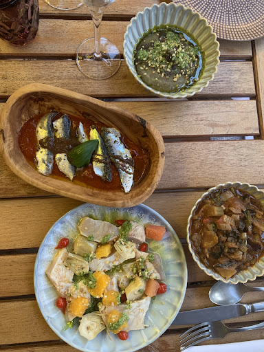 Read moreWe have a second home in Villefranche and have our usual favorite spots we go to but decided to try a new spot - Alma. Great location, lovely design (fabrics, furniture, lighting), staff were friendly… BUT that meal was the worst food we’ve had in a long time. I feel terrible writing this bad review, but the food was so awful. We were a group of 6 and we all agreed it was not good. My eggplant caviar was inedible, and the falafel Cesar salad was the most random mix of ingredients (not in a good way), the boys had the fish soup and said it was not good. They also only had 2 waiters and the food came out extremely slowly making the whole experience even more painful. Such a shame because all the restaurants serve Italian food here and we wanted something different, but I think we’ll just have to enjoy a drink next...