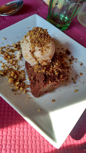 Les desserts : un gâteaux au chocolat sublime, entre le gâteau, le fondant et la mousse accompagné d'une crème de bananes (ou glace de parfum à votre guise) fait maison et pralin, comment dire... une tuerie !