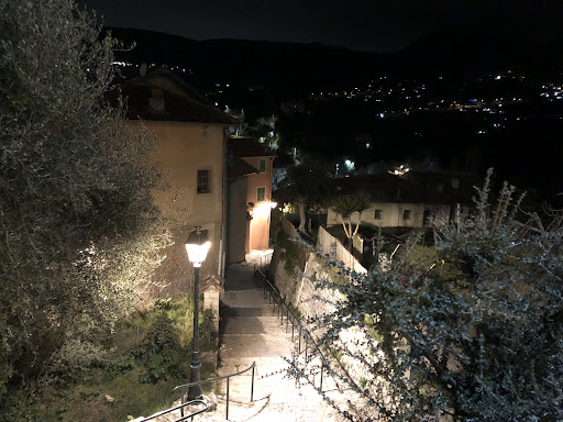 Nous fîmes promenade sur ses pentes escarpées Nous en avons grimpés mille et un escaliers. De très belles villas se blottissent en ses flancs Ici c’est à coup sûr qu’on aime un rythme lent.