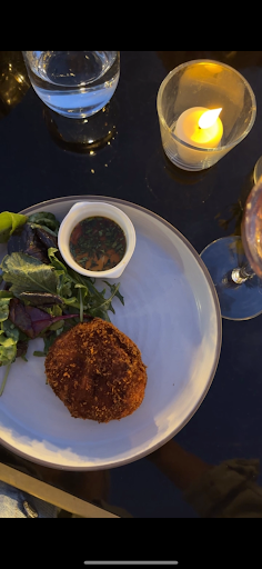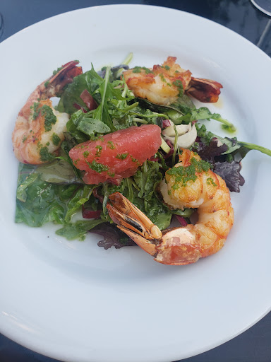 Totally delighted. I was welcomed and offered the premier table with the best view. I ordered champagne and the shrimp salad starter. After having a glass of prosecco at happy hour, the champagne was really delightful. The salad was well balanced so that the flavor of the shrimp was given its due. For the main I had the lamb and asked for a glass of red. The hostess offered to choose the wine for which I was grateful. The lamb was nothing short of incredible. Melting on the tongue, delicious sauce, mashed potatoes, and tiny cut veg. I truly love a well cut veggie. The wine turned out to be another story but was quickly and cheerfully exchanged. How can you not fall in love with...