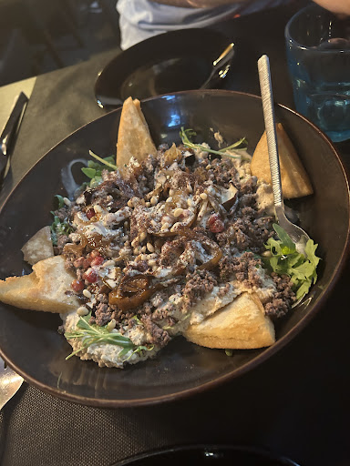 Read moreWe came here in July at around 7:30 pm with no reservation. Because it is peak tourist season, we had to sit inside but honestly it was fine and the owner plays pretty good music! We ordered the humus basar, pargiyot, and mushroom and onion burger. Honestly we weren’t even that hungry but it sounded SO good. We also got a half bottle of wine to split between me and my husband. Food came very quickly and my God the humus basar was incredible!!! Like lights out, a must order. And this is coming from someone who often gets frustrated by kosher restaurants in NYC. We were basically full by the time the main courses came but honestly those were very good too. The owner and staff also make such an effort to make you feel at home and get to know you. Such a wonderful...