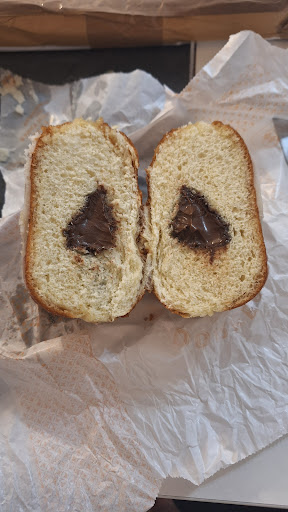 Read moreCompramos un Eclair y una napolitana suizo (creo que se llamaba así). Estaba bien, se notaba que lo hacían ellos pero el sabor no me parecía que destacase en ninguno de los dos productos. También tienen pizzas y bocadillos como producto salado. Las bebidas parecen importadas de otro continente. El hombre que nos atendió fue bastante amable y los precios razonables No tienen mesas donde sentarse, tan solo una mesita con revistas para comer de pie....