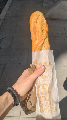 Depuis le temps que je voulais y aller pour les bugnes mais à chaque fois que j'allais dans le quartier pour aller faire les courses chez Carrefour TNL, c'était fermé. J'y suis allée le 1er Mars 2023 et j'ai été servie par le boulanger lui-même qui était très sympa et quand je lui ai raconté qu'il y a 2 semaines, j'ai vu du bus qui m'amenait à Delfino, le petit tableau à sa vitrine où il était écrit qu'il faisait des bugnes à 3€ les 100g et que ça me tentait trop d'en prendre chez lui et qu'enfin, je vais pouvoir les goûter, ça a dû lui faire plaisir. Il m'a annoncé qu'elles étaient encore moelleuses du coup, j'en ai pris 200g mais sur la balance, il y en avait une quarantaine de trop et il me les a fait cadeau. C'était très gentil de sa part 😊 Arrivée chez moi après mes courses, j'ai pas attendu longtemps pour en manger une et quelle bugne ! Super moelleuse et délicieuse avec un petit goût de rhum, c'était une tuerie et j'en ai mangé 3 autres tellement c'était trop bon 😋 Je garde les autres pour le lendemain. Promis, je reviendrai pour en reprendre et goûter d'autres...