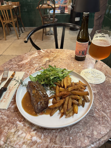 I highly recommend the meatball dish, which is served with freshly made chips and an excellent home made sauce (has to be tasted!). The Blanche beer made with Menton lemons is a genuine taste experience, as is the Flanders Red Ale. Finish with a dessert (depends on the day) or the special ‘Hydromel’ mead, which is sweet with a unique flavour.