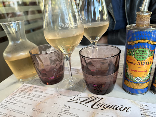 Read moreI learned that much of the French Riviera was a part of Italy or Sardinia, and that's why there was so many Italian restaurants in Nice, France. So, we were looking for a more French restaurant, and we choose Brassiere Le Magnan. It's on a busy corner, mostly outside seating, and always a crowd. Lots of choices on the menu and the salmon pasta caught my eye (I know, Italian again). It was very good with small pieces of fresh cooked salmon, and very tasty pieces of smoked salmon too! My wife ordered an amazing looking flambe shrimp dish. Good wine was very inexpensive everywhere, and I paid between $9 to $11 USD per glass, for some tasty chardonnays. Both meals came with a nice salad & bread. The desserts were extremely good looking, and we had nice size cake, one part was like yellow cake with chocolate drizzled all over it, the other part was like a souffle with melted chocolate inside of chocolate cake, and a big scoop of whipped cream...incredible! It was a great experience with great service, and very tasty food, in walking distance, right...