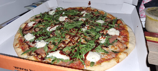 Convenience store-based pizza chain doling out create-your-own pies along with wings.