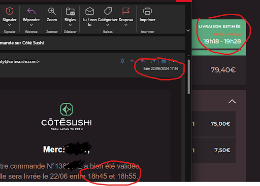 Read moreDepuis 3 ou 4 ans maintenant que je commande régulièrement chez Côté Sushi, et il y avait rarement quelque chose à reprocher. Depuis quelques mois, par contre, ça se dégrade. Je vais passer sur le nombre de baguettes/serviettes/sauces commandés et jamais livrés en conformité avec la commande, c'est presque un détail. Là où ça chagrine un peu plus, c'est au niveau des délais de livraison et de la qualité. Dans les boxes, et particulièrement les grosses, les sushi sont agglutinés, et se désagrègent lorsqu'on essaie de les attraper. Le respect des délais de livraison est également devenu très aléatoire. Par exemple, pour 3 commandes en 2 ou 3 mois, à chaque fois pour un montant d'environ 80€, incluant la grosse box: Commande 1. Erreur de livraison, je préviens le restaurant immédiatement, je suis relivré environ 4h plus tard... (je n'ai évidemment pas accepté que le livreur "récupère" la commande là où il l'avait livrée par erreur) J'avais planifié une livraison (jusque là çà allait, c'était arrivé à l'heure) car je devais ensuite m'absenter pour aller récupérer des gens à l'aéroport puis nous devions tous manger des sushis en rentrant. On les a mangés, mais environ 3h ou 4h après être rentrés de l'aéroport, vers 22/23h...J'ai bien évidemment appelé régulièrement le restaurant pour savoir ce qu'il en était, et à chaque fois on m'a servi une excuse différente: y'a du monde, il pleut, on n'arrive pas à trouver de livreurs disponibles, etc... En gros, c'est la faute à pas de chance ou à tout le monde, et absolument pas corrélé avec un problème d'organisation au restaurant... Commande 2. A part les sauces/baguettes livrées qui n'ont pas grand chose à voir avec ce que j'ai commandé et les sushis toujours impossible à décoller les uns des autres sans les casser, ça allait. Commande 3: Commande validée aujourd'hui vers 17h pour une livraison avant 19h. Il est 19:15, on en est à plus de 30mn de retard sur l'heure estimée de livraison, et la commande n'a toujours pas quitté le restaurant... je sens que je ne suis pas prêt de diner... Pourtant aujourd'hui il ne pleut pas... Ah, l'heure estimée de livraison vient de passer à 19:35, et les chefs sont à priori toujours en train de préparer...