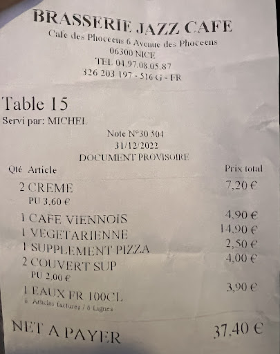 Read moreWas literally the only restaurant open on our first night in Nice in July that still served food at night. We arrived in the evening and didn't have dinner yet, so after checking in at the hotel and watched some fireworks we looked for some food in Nice centre, was around 11 PM and everything was either closed or they dind't serve food anymore, just drinks. Luckily, this Italian restaurant still served pizza and it was delicious, plus quick and...