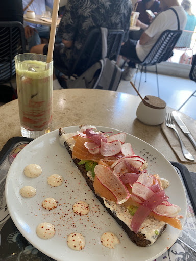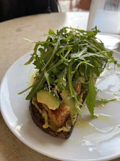 Where Cafe Fino redeemed themselves was the food and beverage. I had the iced strawberry matcha latte and it was FABULOUS! The salmon avocado tartine also did not disappoint, with many dots of a lovely crème based sauce, radishes, and pickled onions, the flavor was so balanced and unique.