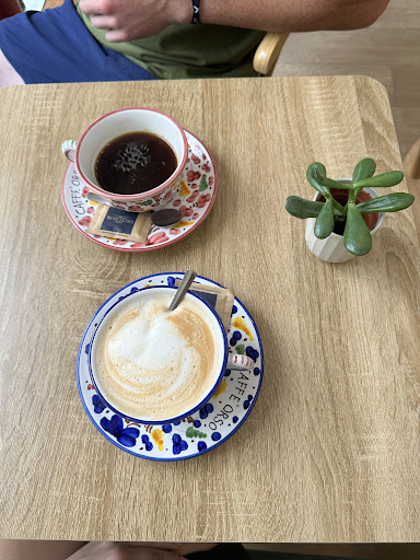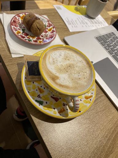 Read moreWe were greeted with a very warm welcome. She took the time to explain everything to us. The atmosphere is great, very warm and the café is decorated with much love. The coffee was delicious, we had a cappucino and a moccacino. The cappucino had a great milky taste to it. The moccacino was sweet, but not too sweet. We also had a foccacia with ricotta and eggplant. It was freshly prepared and delicious. As a dessert we had a cookie, which had milk chocolate chips in it and lightly roasted hazelnuts on top, and baci di dama with chocolate ganache in it. We would highly recommend...