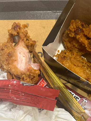 Cependant, à notre grande déception, nous avons constaté que la viande de poulet à l'intérieur était encore crue et donc impropre à la consommation. Nous avons immédiatement signalé le problème à l'hôtesse, qui a accepté de faire réchauffer le plat, bien que son attitude nous ait paru peu conciliante.
