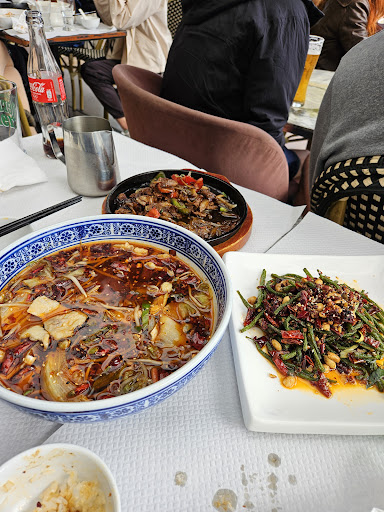 After traveling in France for a while we started to miss chinese food and decided to stop here for a late lunch. We loved that the dishes were familiar and the spices were bold in dishes that show the chilli peppers. My husband enjoyed his water boiled fish, and I enjoyed the beef and peppers on an iron plate. We also ordered some string beans and were surprised that it was spicier than the water boiled fish. If you're not sure you can handle the heat of the chili peppers in the pictures, I recommend asking them to make a non or less spicy version for you.