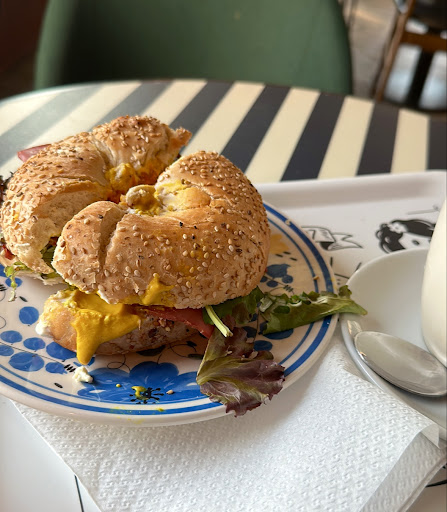 A DEFINITE RECOMMENDATION! So i had a terrible start to my morning as i missed my flight so i had a lot of time to walk around to find somewhere to have breakfast. I stumbled across this place and gave it a go. The bagels were amazing and so was the hot drink. The atmosphere is lovely and staff even nicer.