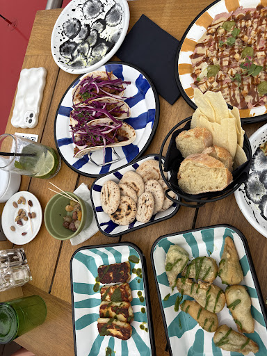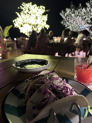 My daughter reserved this spot for a bday celebration for 9 people. Her plan was for tapas, drinks, mingling, toasting, celebrating with a view and live music. Unfortunately, the website does not explain that live music is not on Saturdays (only a DJ on Saturday). Would be nice to go back for live music. It's really a lovely rooftop - lots of tall tables with high chairs with a view, which we'd have loved, but those seat 7 max so when they were heading to bring our party way in the back near the bar/kitchen under the tarp roof where there was no breeze, no fans, no view and it was blazing hot and stuffy, to a table with chairs meant more for dining than mingling and chatting, we were very disappointed. It was also just too dang hot under there. My daughter had searched long and hard for the "perfect" place to celebrate her birthday and I knew she was terribly disappointed. I plead our case with the Maitre D, Pierre, and he very patiently and kindly tried to resolve this for us with a totally sold out evening - they were fully booked, which I understand. At the end, he was kind enough to allow us to gather next to the pool on the pool loungers and small tables - like a private party for the first hour! No view from there but it was SO much better than the table they had chosen for us and we were able to move about and chat with one another rather than be stuck on a chair. He and coworkers quickly rearranged the pool area to create a space for our party. They were awesome. We were SO grateful for this kind gesture. Merci, Pierre!! Our server was Akram (I hope I spelled that correctly - maybe it was Akaram), a very friendly and kind young man (family from Russia) who spoke English as well (our party was mostly bilingual but used a lot of English). Other than the first order of drinks taking a very long time (not our servers fault), he was attentive and we were really happy with our experience there - good tapas, drinks, ambiance, service.