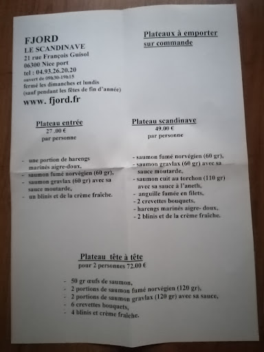 Read moreBonjour, le restaurant le Fjord, est un restaurant suédois, proposant une cuisine simple, avec d'excellents produit, dans une ambiance calme, à prix raisonnable. Alors si vous voulez "voyager" le Fjord est une excellente adresse, où pour serez tres agréablement reçus et conseillés. Par contre, penser à réserver avant de partir pour la Suède. Ce restaurant propose des plateaux à emporter, et également vend une gamme de produits scandinaves (poissons fumés, ou aromatisés, biscuits, conserves, déserts,...) que vous pourrez également découvrir chez vous. Alors venez en Suède..., C'est à 2 pas de chez vous, en prenant notamment le tram T2, station...