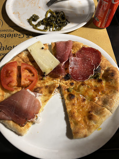 Du dĂ©but Ă la fin, un dĂ©sastre. Les crĂȘpes : dure comme du carton, pas de garniture, seulement trois petits morceaux de bĂ»che de chĂšvre industriel, dĂ©coupĂ© grossiĂšrement et posĂ© a mĂȘme la crĂȘpe sans un soupçon de sauce ni dessous ou dessus, trop sec. On a du la renvoyer en cuisine et commander autre chose. Focaccia : un fond de tarte Ă pizza Ă©paisse dâun demi millimĂštre, agrĂ©mentĂ© dâune merveilleuse charcuterie venu tout droit de lâIntermarchĂ© du coin, belle grosse tomate coupĂ© grossiĂšrement et posĂ© comme ça, sans sauce. Vendue Ă 16⏠nous nâen avons pas eu pour notre argent.( voir la photo ci dessous ) La crĂȘpe a Ă©tĂ© changĂ© pour une autre focaccia tout aussi bien prĂ©sentĂ©e. Gnocchi gorgonzola : lustucru sâil vous plaĂźt ( du moins industriel ), le gorgonzola nous nâen avons pas senti le goĂ»t, insipide, sauce certainement coupĂ©e Ă lâeau ! Tarte au citron meringuĂ©e : le supermarchĂ© du coin doit faire fortune grĂące Ă eux puisque tout viens de la bas, mĂȘme pas un petit essai de prĂ©sentation pour camoufler tout çaâŠ