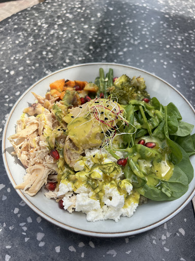 Nice concept and holistic approach, lovely terrace. The food was good, but to be honest, nothing to die for — a bit pricey for what you get. The service could use some improvement; the wait time was longer than expected (I agree to wait but there were some orders after mine which were delivered before mine). Compared to other similar places in Europe (for example Honest Greens in Barcelona), the prices here are quite high. I know it’s the Côte d’Azur, but even so, the value doesn’t fully match the cost. The scrambled eggs weren’t exactly scrambled — they were okay, but nothing special. Bread was good. Tried the “Coq au Bowl” — basically a spinach salad with a spoon of hummus, some chicken and sweet potato (20 euros). The dressing saved the dish. I wouldn’t mind paying more than 20 euros for a meal, but it has to be worth it. I paid 55 euros for 1 scrambled eggs with salmon, 1 Coq au bowl, 1 overnight oats, 1 ice coffee and 1 lemonade. I will give...