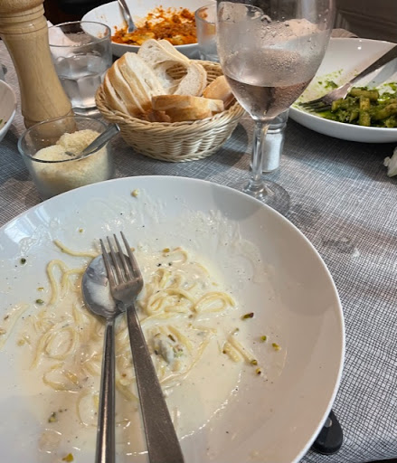 Stefano, the Chef-Patron, took our order and upon reflection advised us that we had ordered too much food. A deletion later the enjoyment began. Burrata with Speck, lovely. Mains of Ravioli Bolognese, Tagliolini with gorgonzola & pistachio, and a penne alla pesto (specially done for the children) were all superb. The Tiramisu and the Cannoli desserts—sublime.