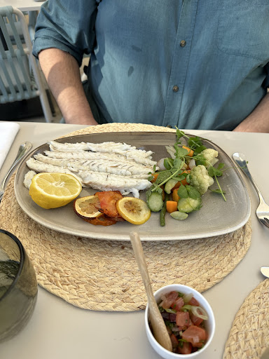 I just stopped at 17:50 for quick snack/ ceviche of daurade fish. I had to remind them to being me menu even if they were not busy and chatting.. Anyway, as I knew what I wanted and not to loose time (i just finished beach very hungry, and I still had later dinner plans) I told them directly ceviche and a glass of white dry wine to go with it. Also some still water. It didnât take long to get my wine and 1 litre of water bottle, that server started opening immediately. I asked if he has smaller bottle as I am alone, he said yes and brought 0.5litre. ! Why would you by default bring 1 litre for 1 person?! To you bring barrel for 3 people?! Anyway, clear mis selling. Ceviche arrived pretty fast and it was amazing! When I asked for bill I saw that my glass of wine costed nearly same as ceviche?? I checked menu and I saw they gave me the most expensive glass 27eur, while they had wines from 12eur up. Such a poor additional mis selling!! Its not a problem to pay, but this shows your âclient orientedâ mis selling so clearly. Happy to consider new expensive wine I dont know, but when I asked to propose nice wine it is extremely worth mentioning that btw madame, this glass will be double that other wines we have, are you fine with it? Or maybe directly bringing 0.5litre water not 1 litre?! Even if ceviche was really nice, the behavior of waiters brought down the full experience! Very sad and I dont think I will be recommending it or going back personally or...