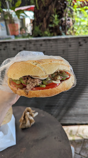Read moreWe came here for the pan bagnet as we heard this was the place to come. This place is a kiosk. They have lots of outside seating. Had the pan bagnat with a glass of rose wine. Really delicious. It come in a paper bag. The sandwich has olive oil in so I recommend eating it over the bag as the oil drips out. The sandwich is really good with lots of flavours and tastes so fresh. It’s near to mediterraneo food hall so after we went there for a beer in...