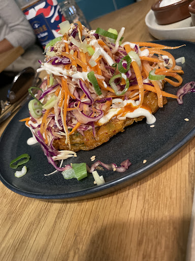Read moreWe had pretty high expectations for this place but unfortunately we weren't that impressed. It's a small place so the vibe is crammed and loud. I wish you could sit outdoors, this would help a lot. The food was the real letdown. After reading so many glowing reviews, we really thought this was going to be amazing. The menu offers a whole lot of different cuisines from around the world, and maybe that's why none of them were really exceptional in the end. We ordered the kimchi pancake as a starter - the best dish we had that evening - which was well-seasoned but a bit too sweet. The mains we picked were the spring rolls with pad thai and the burger. The spring rolls turned out to be summer rolls (not the same thing) so we didn't get what we expected and the pad thai was more of a salad than anything else. The burger was tiny and rather bland. The plate mainly consisted of a large salad. We didn't try the desserts, so I don't know if they would have made up for this. If you're raw you might find what you're looking for here but if you're here mainly for the vegan food, I'd recommend Utopia or Not...