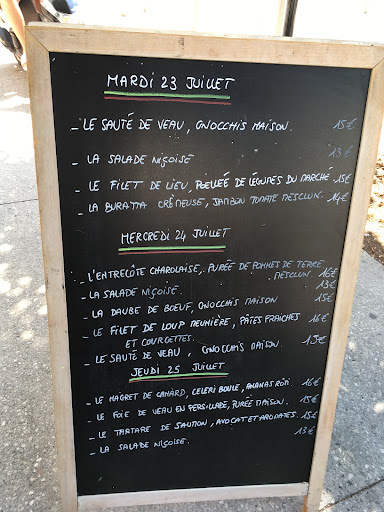 Read moreDe la vraie cuisine et des plats à petits prix. Le menu ( 5 choix ) change tous les jours. Ouvert dimanche midi aussi ce qui est rare à Nice ville. Terrasse au soleil et autre terrasse à l ombre sur la place du marché St Roch. Service sympa. Je vous mets au défi de trouver a Nice du filet Wellington avec deux légumes frais ( en ce moment asperges vertes et petits pois ) plus des pdt sautées et du mesclum pour 20 € ! Plats à 17 €. Desserts à 5,5 €. Et un vrai délice ! J'y ai mon rond de serviette 3 ou 4 fois par...