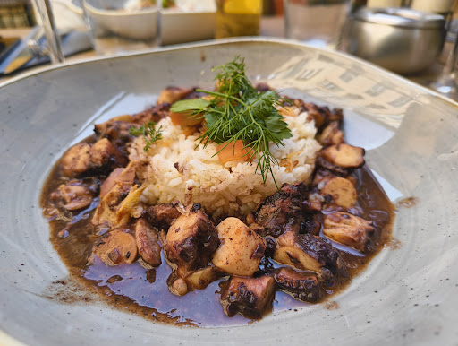J'ai déjeuné pour la 1 ere fois dans ce restaurant qui, de l'extérieur n'attire pas forcément l'attention. Cherchant un resto situé à proximité de la gare Nice-Ville, je l'ai choisi car il était plutôt bien noté sur Google. Et pour moi c'est 5 étoiles ! Déco intérieure Cosi. Cuisine ouverte sur la salle. A l'arrière du resto se trouve une cour intérieure à l'abri de la furie citadine. L'accueil y est sympa, convivial. On se sent les bienvenus immédiatement. Côté assiette, une carte variée (viandes, poissons, végé) très bien maîtrisée. Et important à préciser : tout est fait maison ! 👍 On y trouve du traditionnel (daube niçoise par exemple) mais aussi des plats régionaux avec une touche d'exotisme comme le cari de poulpe avec son riz Byriani (voir Photo). À savoir qu'en fin d'après-midi, le resto se transforme en bar à tapas. J'ai hâte d'essayer ! Alors, le resto c'est uniquement le midi. Bon à savoir. Côté service en salle, c'était irréprochable. Le personnel est agréable et attentionné. Ce restaurant est géré par des professionnels en cuisine et en salle. Ça fait plaisir parce que c'est pas toujours le cas. Je vais y retourner avec certitude car on y mange très bien et on s'y sent très bien. J'aurais encore traîné à table si je n'avais pas eu un...