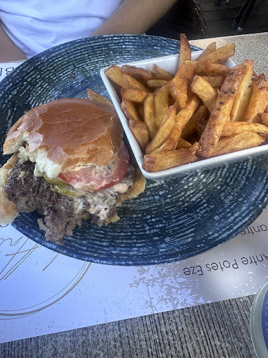 The setting is undeniably beautiful – but that’s where the positives end. My husband ordered the Cheese Burger for €21, expecting a high-quality meal with Black Angus meat. What he got was a dry, flavorless patty with the texture of cheap, frozen minced meat that had just been slapped onto the grill. You could still see the lines from the meat press – it looked and tasted industrial. The fries were limp, soggy, and clearly not freshly made. Honestly, we’ve had better meals at fast-food chains – for a fraction of the price.