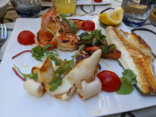 Read moreCommençons par le commencement, Serveuse ne parlant pas un mot de français, mais pas non plus bien bavarde en italien : limite suffisante. Ensuite vient la carte : plutôt sympathique au premier abord, semblant proposer des produits frais pour un prix pas déraisonnable, mais ce n’est qu’un leurre, ne vous y trompez pas, le produit le plus frais qu’ils vous servent est sans doute le café ou le pain. Pour le reste, c’est soit du surgelé soit du produit bas de gamme métro (ou pire) a peine réchauffé au four à la poêle ou « à la plancha » comme il est indiqué sur leur carte. Passons à l’assiette : nous avons commandé la daurade et le calamar et résultat j’ai obtenu 6 (6!) encornets bien trop cuits, des courgettes (qu’ils osent appeler « légumes de saison ») et une bien maigre purée mousline (aucun goût) en accompagnement, le tout dedans le moindre assaisonnement ( pas d’huile vinaigre sel poivre 0 condiments ou sauce…) et idem pour la dorade que vous pouvez aisément faire chez vous, je vous détaille la recette : prenez un filet à 5€ chez picard et faites le cuire. Fin. Un rapide coup d’œil en direction d’autres tables m’a vite permis de comprendre qu’il en était de même pour d’autres plats En résumé un bien bel attrape touriste dans lequel je suis tombé, j’espère dans mon malheur que les 50€ que j’y ai dépensé auront au moins servis à prévenir d’autres vacanciers de l’arnaque. Fuyez par pitié qu’ils ferment enfin, changent de propriétaire et proposent enfin une cuisine à la hauteur du cadre de la belle...