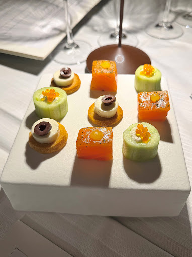 Read moreSpectacular setting overlooking the sea. The cocktails (not a French specialty) were very well made and a rose wine a good value for the price. Some of the food was great (langoustines, sweetbreads, desserts); some was okay (fish, amuse bouches); and some was terrible (lamb two ways with little sides that had been made days or weeks in advance and reheated). Altogether not what one would expect at a Michelin starred restaurant. However, what ruined the experience for us was the waiter asking us if we wanted to leave a tip which was not included in the bill.I asked if the “service “ was and he said yes but not the tip. I said no extra tip and he disappeared to sulk for ten minutes. He finally returned, ran the credit cards and on our way out said Merci pour le tip. In over 60 years of eating in restaurants in France this is the first time I had ever been asked for a tip. It left a bad taste in our mouths and guaranteed we would never return...