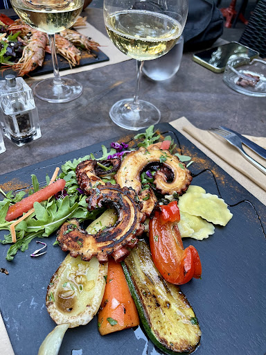 Read moreRistorante provato ieri con amici in occasione di una cena con le rispettive famiglie. Location molto curata, all'interno di un uliveto, con luci e ombrelloni. La cena è stata piacevole, le pietanze ben cucinate. Si nota una buona attenzione nella scelta delle materie prime, soprattutto per i piatti di mare. Come spunti di miglioramento suggerirei di evitare di aggiungere ad ogni piatto servito n.4 ravioli di magro con salsa di parmigiano e di lasciare un minimo di illuminazione nella zona del mini golf, in modo da renderla utilizzabile dai bambini, anche la sera. Trattandosi di un ristorante turistico, vicino alla frontiera, ci andrebbe un minimo di conoscenza di italiano o inglese da parte del personale di sala. Infine, i prezzi sono sensibilmente sopra le aspettative: in 8 abbiamo speso quasi 40 euro a testa considerando che le 2 bambine hanno mangiato il menu kids ovvero pollo e patatine. Amari...