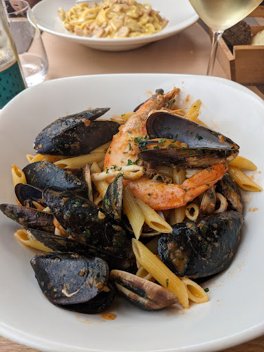We arrived late for lunch and were seated quickly. Our waiter welcomed us with a big smile and was extremely attentive and chatty throughout the meal. I had the Penne Allo Scoglio which was absolutely delicious - a house special according to our waiter. My partner had Spaghetti Carbonara made with fresh pasta of course. We had a glass of Italian sauvignon and a complimentary amaretto at the end of the meal.