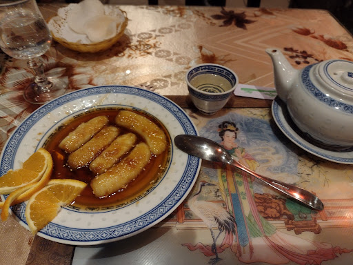 Dessert was flambé bananas in a liquor, along with some tea.