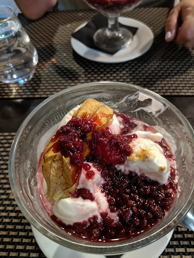 However, the service we received was very confusing and unpleasant. To begin: there was no explanation about dishes, at some point we might have gotten an amuse? No clue as it was put down and picked up before it was finished. We decided to share the burrata with the table (several burrata dishes), but we were told this was too small to share. Therefore we ordered a larger amount of appetizers, but when they came the burrata looked pretty big and large enough to share with 4 people. Very confusing. Contrastingly, the portions of the main courses were small.