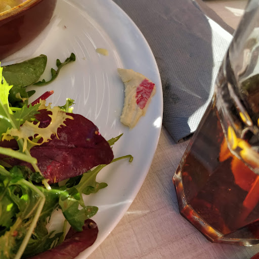 Read moreRestaurant bien situé, au soleil, mon dernier passage est plutôt mitigé côté repas pour un repas a 23,5, une tomate mozzarella assez décevante en entrée, les tomates en petits cubes sur lit de salade verte et les cubes aussi petits de mozzarella ??? On aurait dit du caoutchouc dur sans saveur. On est loin d'une mozzarella premium. La suite j'ai choisi des gnocchis sauce roquefort, faute de disponibilité on me propose des tagliatelles finalement même les tagliatelles n'y sont pas et j'ai des farfalles, le plat est bon mais c'est pas ce que je voulais.le dessert classique tiramisu.cafe une bière. En résumé c'est cher pour quelques morceaux de tomates...