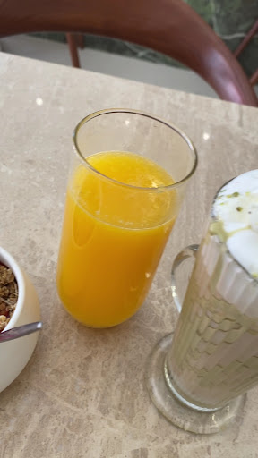 The menu comes with a variety of well-thought-out items that make it feel more like a brunch feast than just a simple meal. I chose the brioche with pistachio, which was on the sweeter side but absolutely delicious. Alongside that, you get a small portion of granola—beautifully presented and full of flavor.