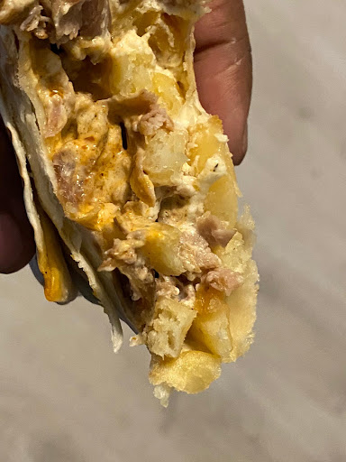 There wasn't enough sauce and the meat was not well cooked. You can see the photos.