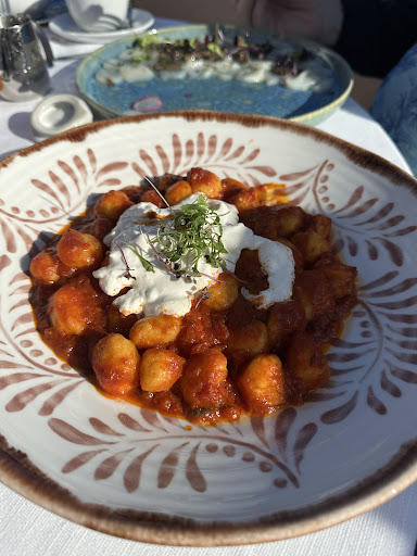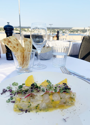 Read moreIt was a scorching day as we sat overlooking the beautiful Villesfranche Bay. It really is an amazing setting. I’ll be honest…it’s not cheap. Our starter was very nice, salmon with ginger, and strangely…the portion was too big. Not often you hear that. Our second main was chicken in a mushroom sauce. The chicken was a little dry, I suspect from being on the pass a little too long. The sauce was nice and would have been enhanced with some cream. The dish lacks some vegetable. You might wonder why I give this a four star review…in fact I’d like to give it a four and a half star review. The reason? The scallops on a bed of leeks with chiffoned chorizo and creamy, buttery mash was outstanding. Incredibly so. I struggle to see how they could improve it. 4 plump, fresh, fabulous scallops. Gorgeous leeks and a perfect amount of thinly chopped chorizo and beautiful mash. Seriously good food. My advice. Go for sure, order anything you fancy but do not, I repeat, do not leave without ordering the main course of scallops....