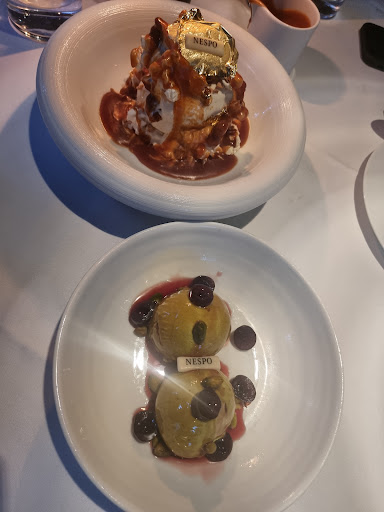 I traveled with my friend in the south of France for a week and we chose to eat our last dinner at the restaurant "Nespo" in Nice. Without a doubt it was an excellent choice! We enjoyed the whole experience very much, starting with the quick sitting (even though we were 15 minutes late) by the hospitable hostess, the kind service of the amazing wait staff. I want to mention an incident that happened to us, my friend ordered a mojito cocktail and the glass just broke in his hand, luckily he was not injured but the drink was spilled on the table. Within a few seconds the waiters arrived, changed the tablecloth and cleaned the table while sincerely apologizing and the incident passed as if it had never happened. We ordered starters which included one artichoke salad and the other oysters in garlic sauce. It was delicious! For main courses I ordered pasta with truffles And my friend ordered roast veal with mashed potatoes. We enjoyed every bite! And the desserts.. Wow! Just perfect! The photos will speak for themselves. When the bill came there were no "surprises" and the price was completely fair. We enjoyed the whole eating experience at this restaurant so much and I definitely recommend it to everyone who visits Nice to drop by for a meal at "Nespo". Looking forward to the next time I return to Nice especially for this restaurant. Thank you for great service...