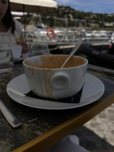 We ordered a dish called “fish soup.” What we got was served in absolutely filthy tableware, stained both inside and out, with a dirty napkin under the bowl. Alongside the “soup” came some croutons, but they were more like stale bread with butter and some herbs on top, accompanied by cheese and mayonnaise. The soup itself looked like a watery broth with no sign of actual ingredients, no salt, no taste, just water with some seasoning. Saying I was shocked is an understatement.