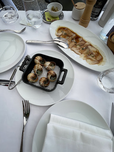 The culinary experience was nothing short of impeccable. We started with the escargot and ceviche as appetizers, both of which were nothing short of brilliant. For our main courses, we savored the whole sea bream, skillfully deboned before us, and the bavette steak, cooked to medium rare perfection - undoubtedly the finest steak I've ever had in France.