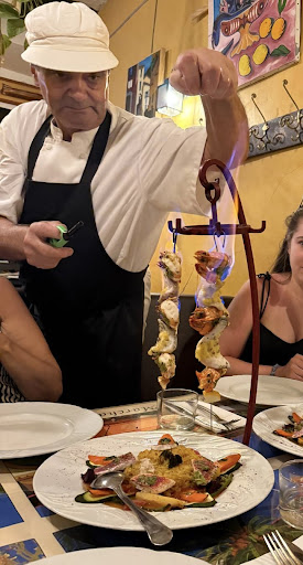 The food is deeply local, hearty, and full of soul. We had the sharing menu and were honestly blown away by the variety and generosity. The starter platter alone had around seven different components, followed by an impressive fire-grilled roulette of skewers (both delicious and a bit theatrical), then a large plate with more surprises, a beautifully curated cheese selection with four kinds of cheese, and finally a lemon sabayon – a perfect nod to Menton’s famous citrus.