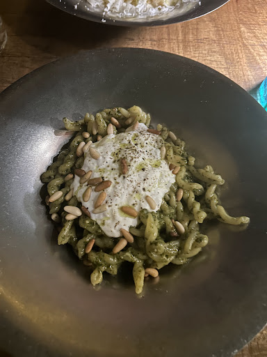 They bring you complimentary focaccia bread and a bottle of water to start, which is such a nice touch. The waiters were really friendly and welcoming, which made the whole night even better. I got the Genovese pesto pasta and my girlfriend had the yellow tomato sauce pasta, both were incredible. We finished with the affogato for dessert and can’t recommend it enough.