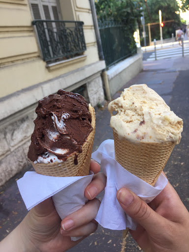 Beaucoup disent meilleur glacier de la Côte d’Azur ou de Nice ? Mais qu’avez-vous gouté avant ce glacier franchement ? Pour en avoir essayé pas mal et avoir 2-3 autres références bien meilleures sur Nice, je ne comprends pas la plupart des avis même si chacun ses goûts…. J’ai pris yaourt et kinder, et bien quelle déception ! Le yaourt était caoutchouteux, on aurait dit du chewing-gum avec un léger goût de yaourt et d’une manière générale les 2 glaces étaient extrêmement sucrées et pas du tout goûteuses, j’ai été très déçue et je n’y retournerai pas. J’irai chez Cesar Milano/Arlequin qui lui est un vrai glacier de qualité et en plus les serveurs sont très gentils et vous font goûter et vous offre la chantilly ! Car ici quand on demande si on peut goûter 2 parfums pour choisir l’un d’entre eux, on vous dit ce sont les mêmes dans le kinder il y a juste du craquant biscuit en plus, ok mais donc est ce que je peux goûter en finalité ??? Et bien J’ai compris que non, ça avait l’air de fortement embêter ce Monsieur peu aimable et complètement fermé, pas grave j’ai choisi au hasard et j’ai donné le reste de ma glace à un SDF au lieu de la jeter à la poubelle, je déconseille entre le service ingrat et les glaces de basse qualité...