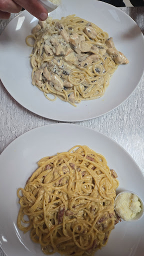 Read moreThe food is AMAZING. We got carbonara pasta, montagnarde pasta (mushroom, chicken, parmesan in a cream sauce) a pizza, and a house salad and every single item was delicious. The pizza was thin but the crust was puffy and doughy. The quality of the food is incredible and all very fresh. Everything came out very quickly as well. The owner is also very kind and accommodating. I could not recommend this restaurant more! (There's also 5 other of these restaurants in Italy. I don't know where but I'm sure those are...