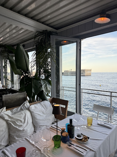RESTAURANT PLACE: This said, I can only point out the most gorgeous wave splashing view sofas✅ we have ever eaten on🌊 The delicious pinsa with truffe✅, great desserts of any kind✅, starting from Strawberry Millefoglie✅ to lemontarte✅ & drinks and a perfect Italian cafe macchiato caldo. ✅ Even the bill at the end was much more then a positive surprise… ✅ Micol made us feel immediately (from the very beginning): COMING AS STRANGERS and being treated as BEST FRIENDS ever since. ACUTALLY we did not want to LEAVE at all, so we will see them again today - trying out their marvelous outside/in bar at A’Trego, Cap d’Ail - right on the border to Monaco.🫶