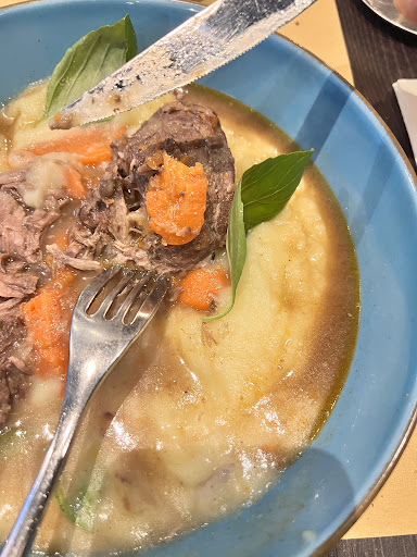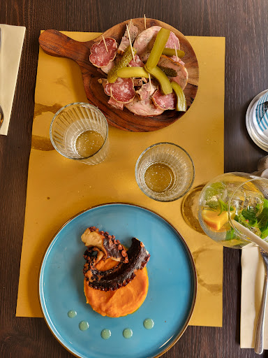 Menu looked appealing although prices seemed a bit high. We ordered the grilled steak and octopus and a carafe of red wine. Grilled steak was a good size but half of it was fat and inedible. Octopus was a decent size and cooked well. Also ordered the chocolate mousse which the waiter recommended. Overall food was decent but again the price value was not worth it. If the steak was not 40% fat it would have been better.