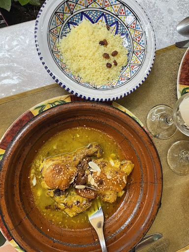 Disappointing restaurant. Server was rude but we had already left another Moroccan restaurant because of an unfriendly waiter on our arrival and we wanted a change from French/Italian fare so we took our seats at the table. We had an aubergine salad to start. It was vaguely acceptable with some stale bread to accompany it. We love tagine and often cook our own version back home in England, fragrant, spicy, juicy, exotic stew basically very easy to make. It's delicious and so I ordered a house special lamb tagine and my wife chose their vegetarian tagine, thinking that a professional chef in a commercial restaurant would be able to produce something really special. Some stale plain, dry couscous arrived in a couple of bowls, each with 10 sultanas thrown on top. Then the tagines arrived, looking the part in the traditional ceramic tagine, sizzling hot. Good start. Neither dish had any flavouring at all and were both so dry it was an embarrassment. Basically, we paid €35 for 6 small potatoes, one which was inedible on my wife's plate due to black pest damage, 6 french beans, a carrot, 20 frozen peas, 2 pieces of lamb neck (90% bone) and 4 slices of preserved lemon. Couldn't...