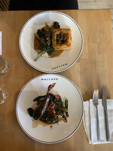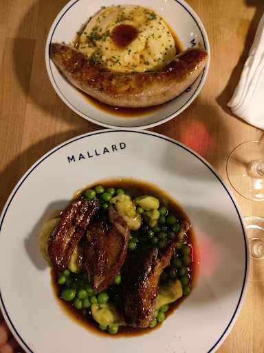 Read moreHad a great time at Mallard! The owner spoke English, had such a friendly out going personality and made it easier to pick a great wine to go with our meal. We ordered white asparagus to start and for our main I had the pigeon with foie gras and my boyfriend got the home made sausage with mashed potatoes. To start they gave us a 2 pieces of what I believe is terrine on the house which was lovely. The asparagus came next, and despite a creamy sauce it was nice and light. First time having foie gras and it was lovely and decadent which paired so well with the lean but tender pigeon. I tried a bite of the sausage as well and it was super tender and juicy! They constantly filled out bread basket with freshly baked sourdough, which we could not stop munching even though we were full! I accidentally ordered cheese for dessert haha but despite being stuffed I thought the nutty notes of the cheese went really well with arugula. My boyfriend had the Baba, which despite still maintaining a strong liqueur flavour was well balanced especially eaten with the cream.
