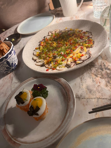 There was this salmon sushi with a truffle and quail egg on top that was the star ⭐ of the evening.